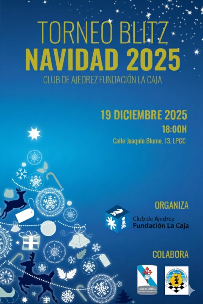 Torneo Blitz Navidad 2025 Organiza: Club de Ajedrez Fundación La CajaColabora: Casa de Galicia de Las Palmas La Federación Insular de Ajedrez de Gran Canaria anuncia el tradicional Torneo Blitz Navidad 2025, una cita solidaria y emblemática del Club de Ajedrez Fundación La Caja. 📅 Fecha y hora 📍 Lugar:Club de Ajedrez Fundación La CajaC/ Joaquín Blume nº13, Las Palmas de Gran […]